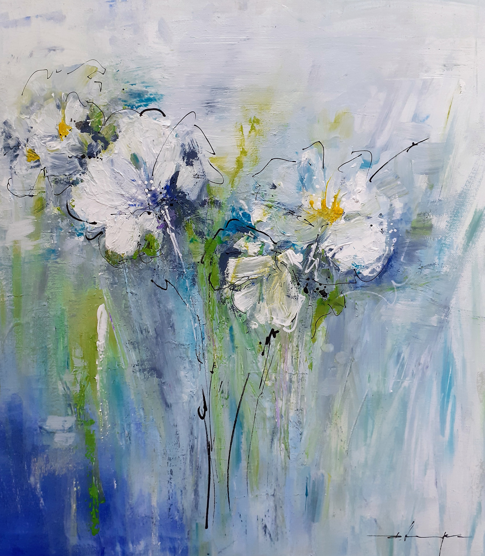 Met acrylverf creëert Christine krachtige composities waar kleur en textuur samenkomen in een levendig spel van licht en schaduw. De veelzijdigheid van acryl stelt haar in staat om haar creativiteit de vrije loop te laten, of het nu gaat om abstracte vormen, realistische portretten of taferelen uit de natuur.